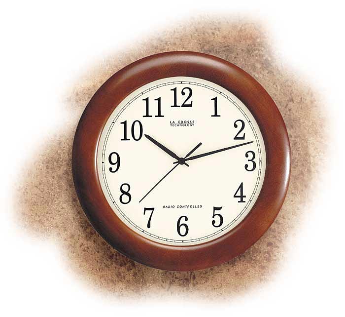 This clock automatically sets itself by picking up radio signals from the U. S. Atomic Clock in Colorado which has the incredible accuracy of less than 1 second time deviation in one million years. Install the battery in the evening and your clock picks up the radio signal during the night, by morning it will display the correct time. After that the clock corrects itself daily, executing automatically the setting from Standard Time to Daylight Saving Time and back, according to the NIST signals. The NIST service is free of charge for everybody, and also controls the timing of TV Stations and space flights. Uses one AA battery, you will never have to worry about power outages again. 12-3/4" diameter walnut frame. Receives signals only from the U. S. Atomic Clock. Will not work in Europe or Japan. Wood color may vary.