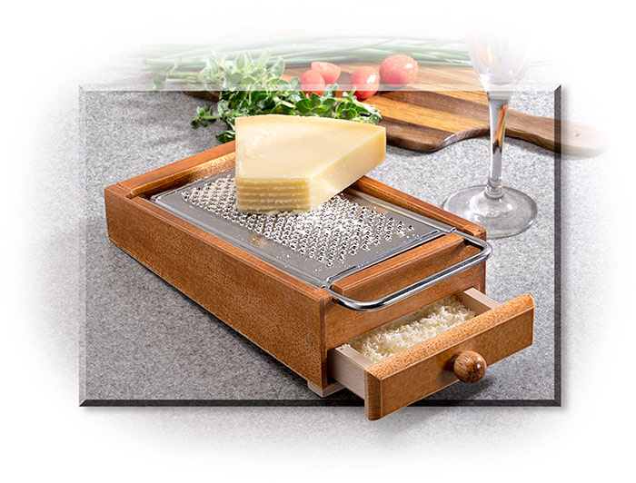 Several years ago, we offered a traditional Italian Cheese Grater based on one the producer's grandfather had made and the family brought with them when they resettled in the United States. We sold several thousand before we lost our supplier. The search has been on ever since. Lucky for us, through our relationship with one of the top knife manufacturers in Maniago, Italy, we will once again be able to offer this handy kitchen tool. This one is handcrafted from beech wood. The stainless steel grater fits into the grooved slots in the box and a removable drawer collects the cheese. It is most suitable for hard cheese. A stop on the bottom of the box allows you to stabilize the grater against the edge of a countertop or table. Wooden parts should be hand washed and hand dried. Grater is dishwasher safe. Measures 5-1/8" x 10-1/2" x 3" deep. Weighs 1 lb. 9 oz. Imported from Italy.