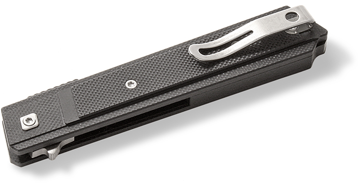 The 3-1⁄4" sheepsfoot blade is satin finished D2 steel at 60-62 Rc. It is secured in the open position with a liner style lock. The polished pocket clip is positioned for right-handed tip-up carry. Measures 3-7⁄8" closed. Weighs 2.0 oz. Made in China. Suggested retail is $99.99.