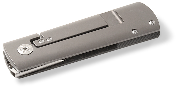 These unique folders, with a double ground dagger style blade manufactured by Maserin®, were designed by Attilio Morotti, master of the Italian Knifemakers Corporation. Maserin, one of the top knife manufacturers in Maniago, Italy, works with knifemakers from across the world for many of the knife designs they produce. The 372 DAGA is made with a FatCarbon® black and gold front handle scale. The back handle scale is Titanium. There are two blade steel options; Elmax with a satin finish and Small Roses pattern stainless Damascus.
