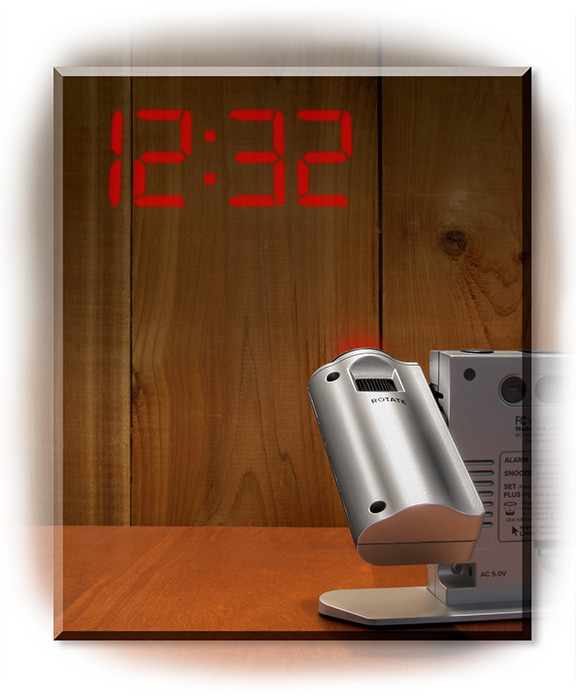 The time on this clock is continuously updated by the NIST atomic clock in Boulder, Colorado, including updates for Daylight Saving Time. The most unique feature is the projection capability. There are four projection options: Time, Indoor Temperature, Outdoor Temperature or alternate Time, and Indoor & Outdoor Temperature. The projection arm rotates for display on the ceiling or a wall, with three brightness options. Can be set to seven different time zones. 12/24-hour time display with snooze alarm. Indoor and outdoor temperature (ºF/ºC). Adjustable backlight to five levels and auto dim. Low battery indicator. Clock has an AC adapter (included) or will run on 3 "AAA" Alkaline batteries (not included). Sensor requires 2 "AA" batteries (not included). Measures 5-7/8" x 4" tall. Weighs 6.2 oz. Setup guide included.