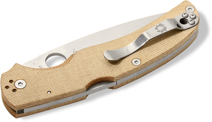 Released in 1997, the original Spyderco Native® quickly set the standard as an affordable, ergonomic and lightweight folder and has been a constant in the Spyderco product line. Part of Spyderco's C.Q.I. (Constant Quality Improvement) program, the Native design has evolved over time yet staying true to its roots. Users started to ask for a longer version of the Native that was better suited to larger hands. Introduced in 2019 the Native Chief™ takes the proven design of the Native and extends it to approximately one third longer. This version of the Native Chief continues that evolution with brown canvas Micarta® handle scales and CPM® Cru-Wear Tool steel.